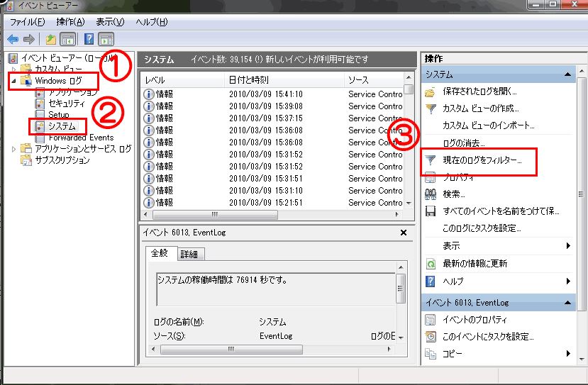 ②イベントログの確認