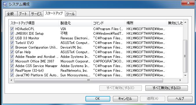 ③msconfigでスタートアップの停止