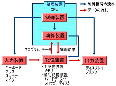 パソコンとは、5大装置と呼ばれる機器がまとまったもの。