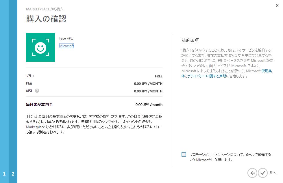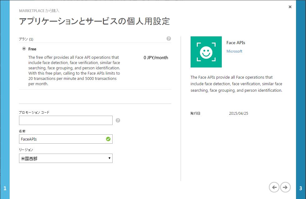 2.ログイン後↓の[Market Place]をクリックし[Face APIs]を選択し、次へ