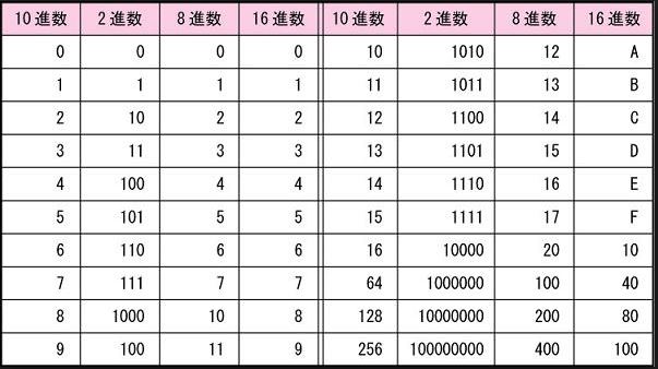そして、2進数で1桁をビットといい、8ビットで1バイトという数字になる。