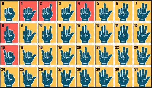 ↓そいえば、こンな手遊びのような2進数のお勉強もあったね。