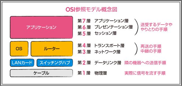 OSI参照モデルを用いて、PCたちは作られるようになり、他メーカでも通信が出来るようになった。